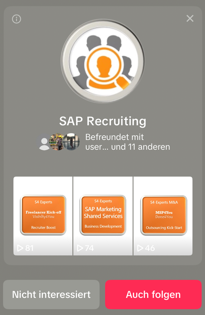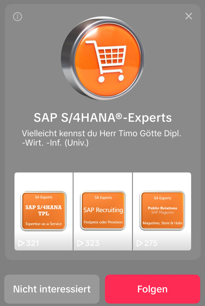 Abgesehen von den Accounts des Herstellers, einiger Influencer und Markenführer der SAP-Community, sind Sie damit bereits Führer im Vergleich zur Konkurrenz. Derzeit befinden sich die Accounts teilweise noch auf dem Weg dahin, da der Aufbau viel Zeit und Ausdauer in Anspruch nimmt. Interaktionen können und sollten täglich nur begrenz durchgeführt werden, da Algorithmen der sozialen Netzwerke Massenaktivitäten reglementieren und der Aufbau einer SAP-Community ohnehin nur schrittweise funktioniert. Die Zielgruppe ist zudem anspruchsvoll, orientiert sich an der bisherigen Followeranzahl und einem professionellen Aufbau. Wir haben für Sie das Henne-Ei-Problem gelöst und eine ausgezeichnete Basis für Ihre Skalierungsstrategie vorbereitet.